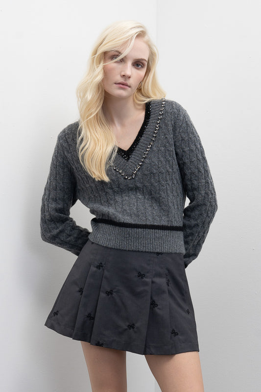 Camisola em Malha com Decote em V e Detalhe de Pedras Goa Goa