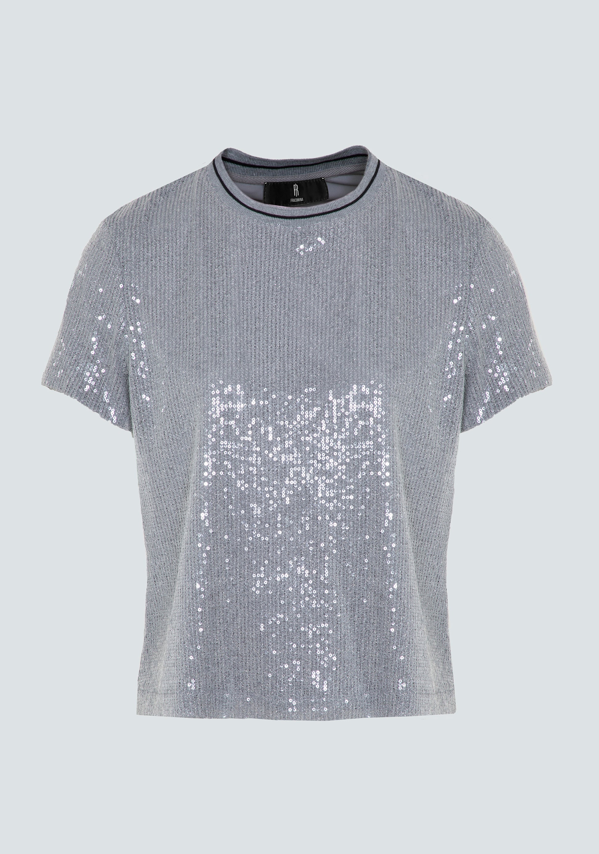 Esta blusa regular com brilhos e decote redondo é um essencial versátil que combina simplicidade e sofisticação. Com corte clássico e caimento fluido, adapta-se facilmente a diferentes estilos e ocasiões, tornando-se uma peça indispensável no guarda-roupa feminino. Perfeita para coordenados casuais com denim ou para composições mais elegantes com saias e calças de alfaiataria, esta blusa transmite conforto aliado a um toque refinado.