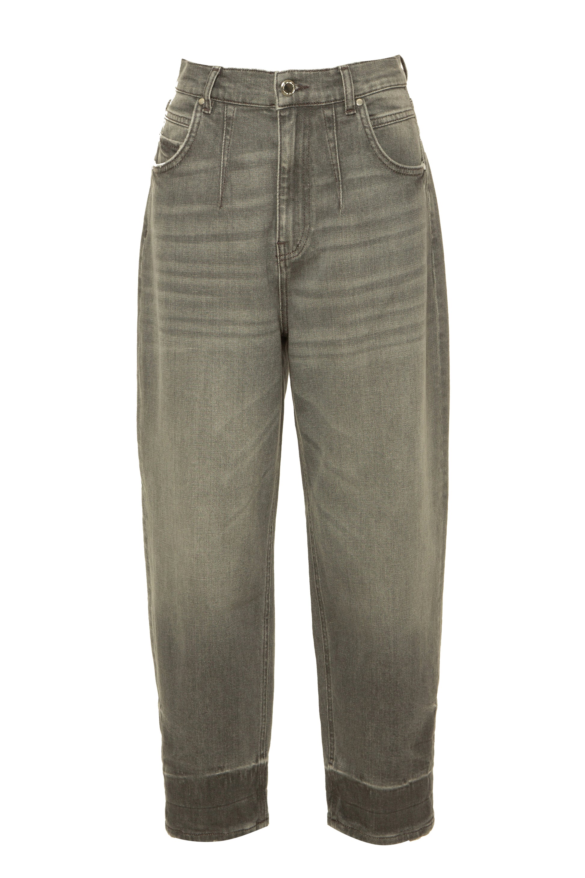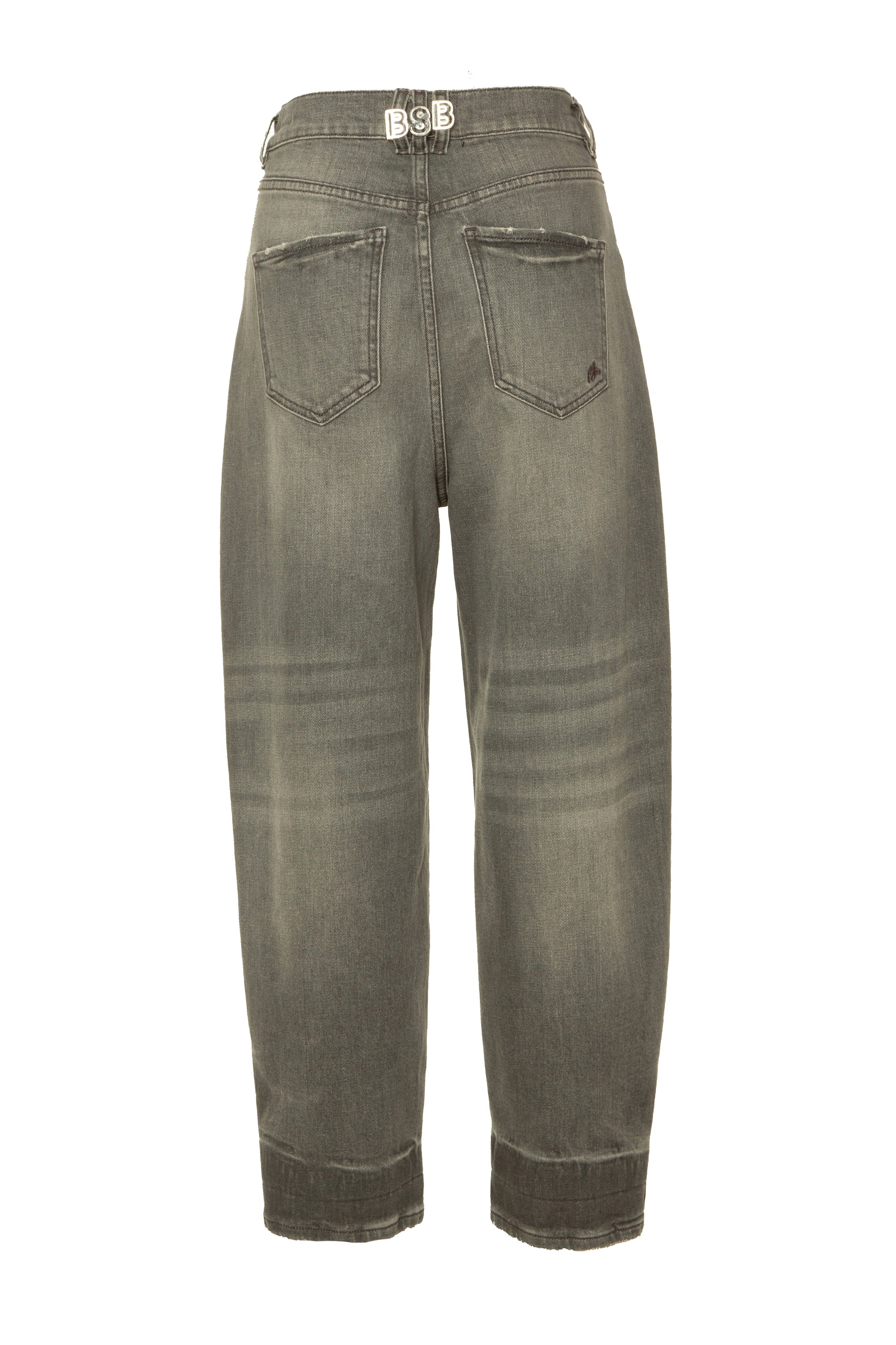Calças de ganga Tania balão, fecho de botões e fecho de correr, com bolsos, com detalhes metálicos nas costas, cintura subida, denim
