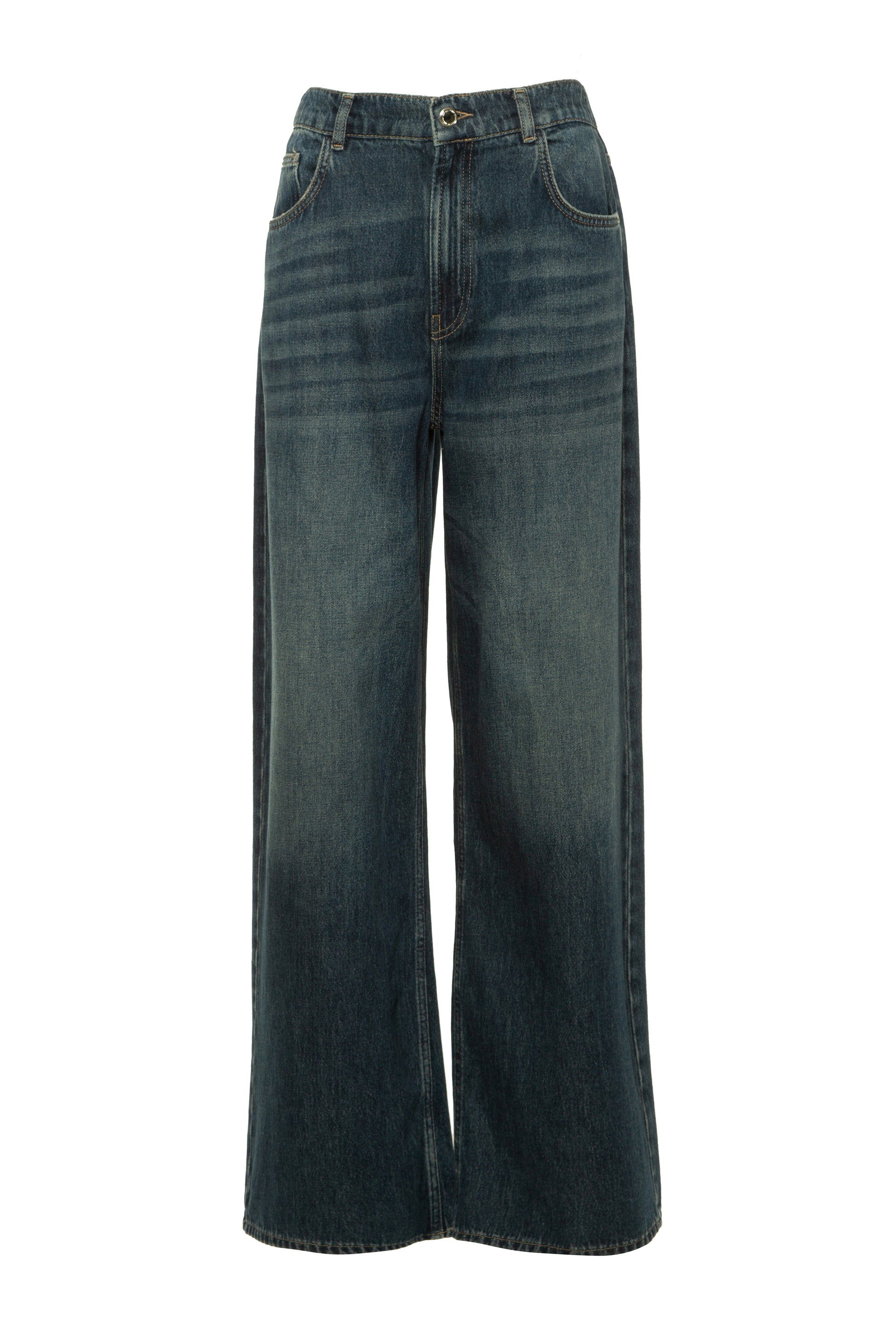 Calças de ganga Lexa, fecho de botões e zíper, com bolsos, cintura média e perna larga