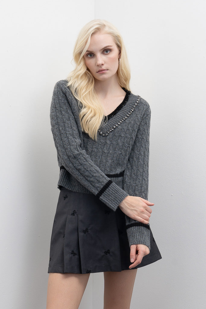 Camisola em Malha com Decote em V e Detalhe de Pedras Goa Goa