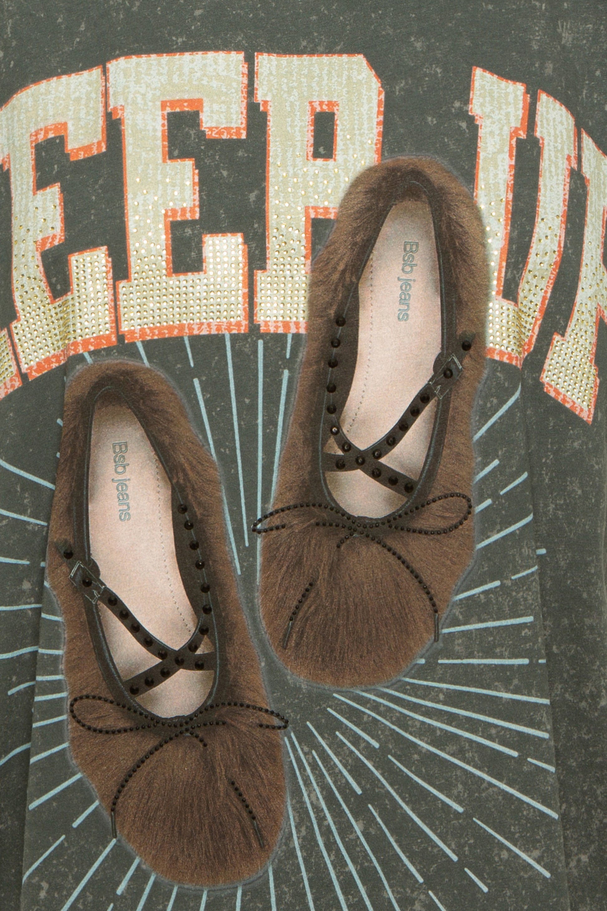 T-shirt, decote redondo, com strass, modelo regular, algodão
